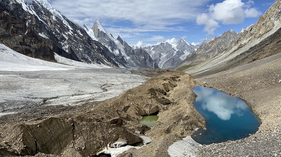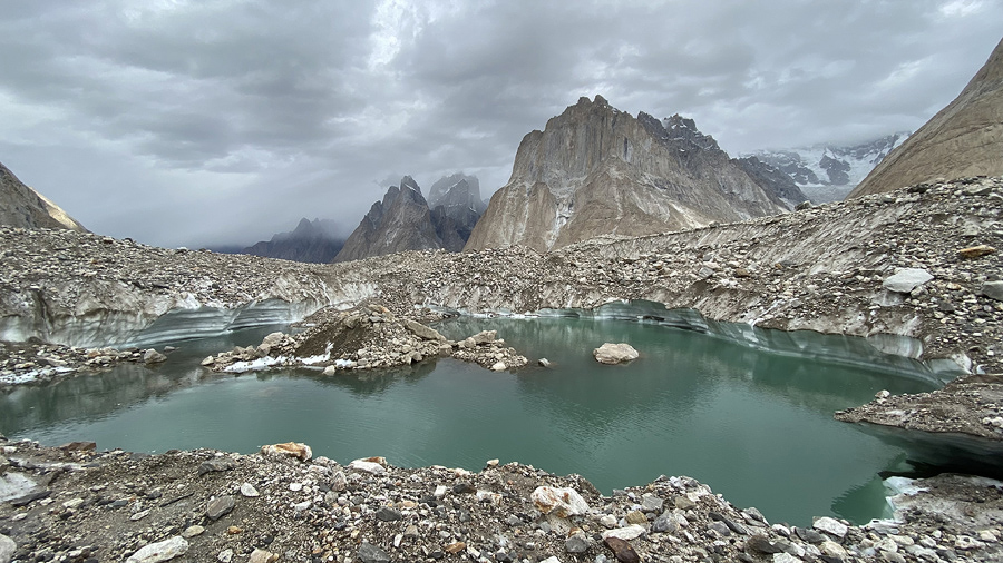 ▲ Jeziorko lodowcowe na podejściu do obozu Goro II (4400 m)