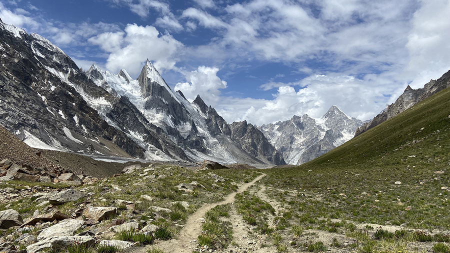 Materiały pochodzą z trekkingu w górach Karakorum z lipca 2025 r. Trasa wiodła z Askoli lodowcem Baltoro na Concordię i dalej do bazy pod K2. Udało się dojść do bazy wysuniętej na 5300 m. Następnie poprzez Przełęcz Gondogoro La (5600 m) zeszliśmy do Hushe, kończąc tym samym 14-dniowy trekking.