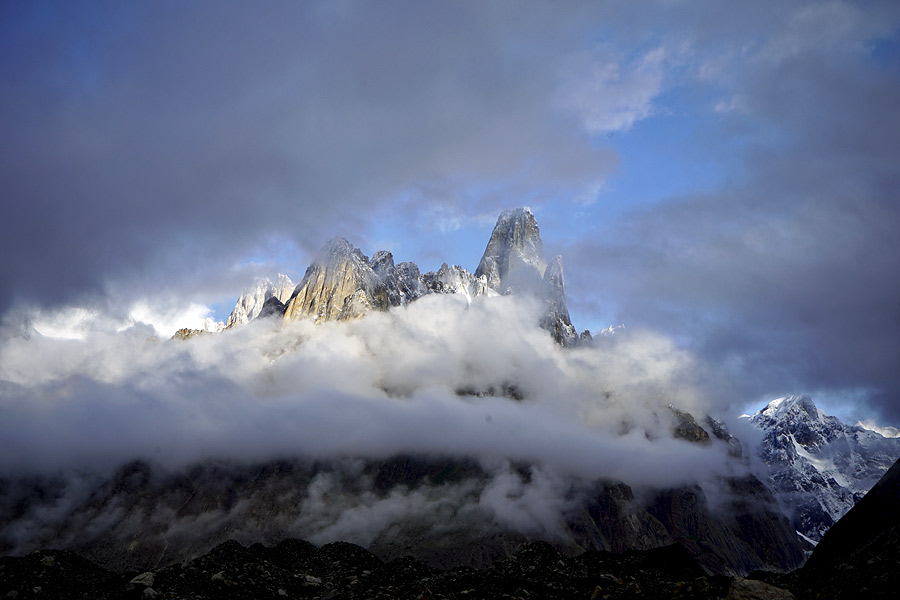 ▲ Grupa Trango oraz Cathedral, ponad lodowcem Baltoro