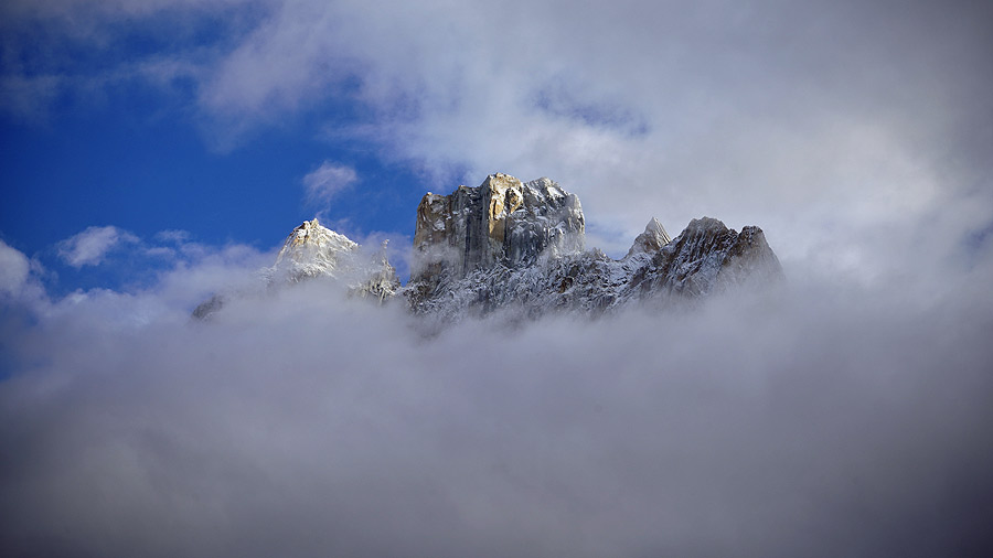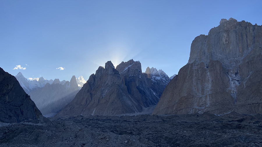 ▲ Słońce zachodzi za wieże Trango