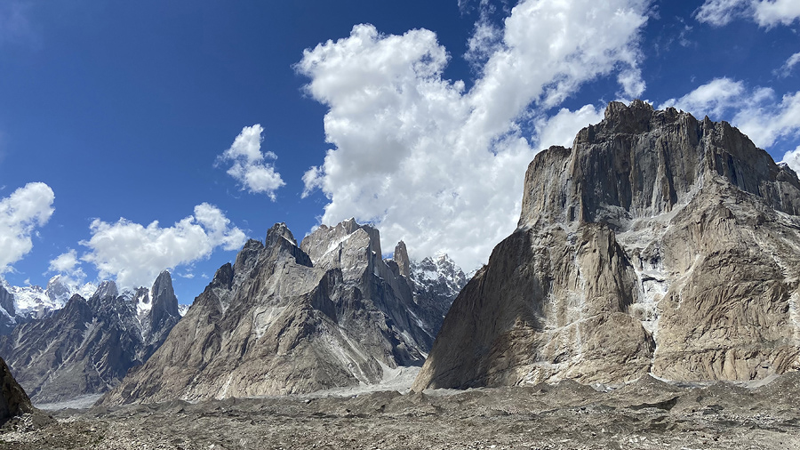 ▲ Widok z Urdukas (4050 m) na masyw Trango oraz Cathedral